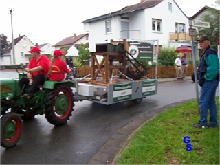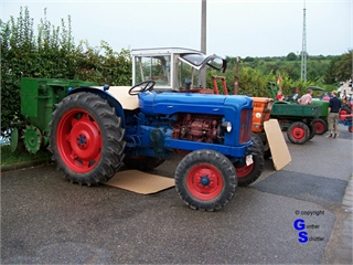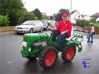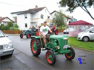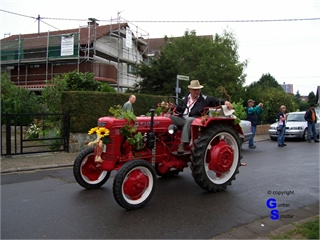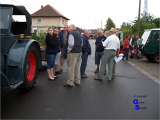 Wie in den vergangenen Jahren gab es wieder eine Traktorparade im Kellerweg als Bereicherung für das Kellerwegfest. Organisiert wurde diese durch den Verkehrsverein Guntersblum und den Verein zur Erhaltung Guntersblumer Kulturgutes, gerne waren wir da mit Material und Personal behilflich. So begann es schon am frühen Morgen, es wurde Material in die Brunhildstraße geschafft und da wurde dann ein Pavillon für die Anmeldung aufgebaut. Die ersten Schlepper trafen schon frühzeitig ein, der beginnende Regen konnte der guten Laune nichts anhaben. Viele Besucher suchten den Kontakt, auch viele Bekannte unterstützten uns bei unserem Heimspiel.