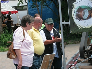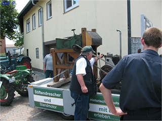 Etwas Besonderes sollte es dann auch noch werden. So wurde gewerkelt und der Stiftendrescher mit Standmotor auf den Anhänger gebaut, eine Plane mit unserem Logo durfte ebenso wenig fehlen wie die Hinweistafeln mit Erklärungen der einzelnen Geräte.
