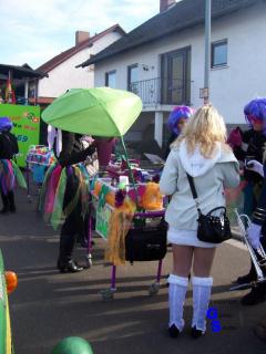 Dorn-Dürkheim ist da erheblich kleiner, auch zeigt der Dienstag seine Wirkung. Aber der ganze Ort zeigt was er kann, die Menschen genießen das Ereignis, überall bekommen die Beteiligten Essen und Getränke angeboten. Ein rundum Wohlfühlumzug....