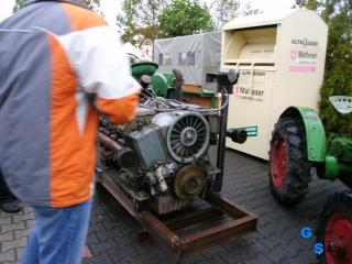 Wir kamen also nass und vom Straßenschmutz gezeichnet in Gimbsheim an..... das tat der guten Laune aber kein Abbruch. Wir erlebten einen schönen Tag bei gutem Essen mit interessanten Maschinen. Als besonderes Highlight war das Stromagregat von Jochen. Zuerst nur ein Kofferanhänger, aber dann öffnete er die Türen. Ein Rundgang durch den Anhänger war wegen der Enge nicht einfach, der Anhänger ist gut gefüllt mit einem kräftigen Diesel und einem Generator. Der Sound der laufenden Maschine ist schon etwas besonderes. So ging auch dieser Tag zu Ende und wir traten bei trockenem Wetter die Heimreise an. |