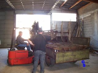 Herr Lebert bot uns diverse Landmaschinen aus vergangenen Zeiten an, darunter auch einen Anhänger.