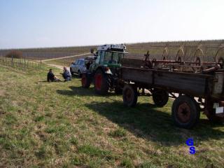 Nach einer Besichtigung wurde der Transport organisiert...... und so starteten wir dann von Guntersblum nach Mölsheim um diese Schätze abzuholen. Der Anhänger (Rolle) wurde geladen und kleinere Teile auf den Autoanhänger gepackt. Nachdem wir uns bei der Familie Lebert bedankt hatten traten wir die Heimreise an....... Ein Zwischenstopp mit Picknick durfte natürlich nicht fehlen.... |
