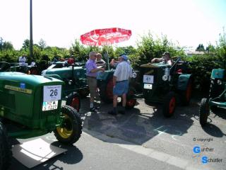 Es kommen immer viele Schlepper und Geräte aus der Umgebung die dann am frühen Nachmittag durch den Kellerweg fahren und die Besucher mit ihrem kernigen Sound erfreuen. Am Julianenbrunnen werden diese fachkundig von Klaus Börner vorgestellt. Die Organisation der Traktorparade wird vom Verein zur Erhaltung Guntersblumer Kulturgutes durchgeführt. Im letzten Jahr plagte uns ein Schauer während der Durchfahrt, diese Jahr war es sehr sonnig, die Fahrer waren für die kleine Erfrischung am Museum dankbar |