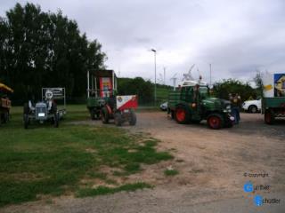 Wir begannen unsere Fahrt in Guntersblum mit 2 Fahrzeugen und sieben Personen sowie einer großen Portion guter Laune. Es war die erste Fahrt des Ferguson TEA nach der Motorinstandsetzung, da stellt sich schon die Frage: "Wird das gut gehen?" Ja nach einer Fahrt durch das sanfte Hügelland kamen wir in Wachenheim an und machten Rast bei Manfred und Margit, aber die Zeit drängte. Wir zogen weiter zur Startaufstellung im Bockenheimer Weg.... am Sportplatz.