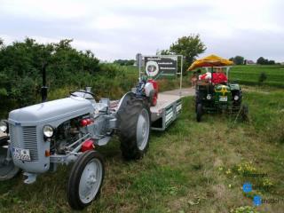 So zogen wir unsere Bahn durch den Ort, viele bekannte Gesichter und nette Begegnungen. Der Ferguson zog munter seine Bahn, viele wussten von ihm aber keiner hatte ihn vorher gesehen, ein wunderbares Gefühl... ....dabei ging die Schefenacker Spritze aus Wachenheim echt unter..... Vom 2. Wagen gab es Bonbons für die Kinder und Leckerli für die Hunde. Auch gab die Malteserhündin Tina in ihrem roten T-Shirt Vorführungen. Nach dem Ende des Zuges ging es dann über den Mühlbrunnen auf den Heimweg. Kurz nach Mölsheim noch eine kleine Rast mit allerlei Köstlichkeiten und dem Blick über das schöne Tal..... Die Kerb ging weiter und wir traten den Heimweg an. |
