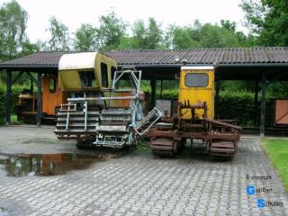 Der Wohnwagen der Pflugmannschaft würden wir heute evtl. als Bauwagen bezeichnen, er war eine kleine Stube mit 2x 3 Betten übereinander sowie ein Aufenthaltsraum und würde heute wohl nicht mehr akzeptiert. Figuren die die arbeitenden Menschen darstellten waren unscheinbar klein. Immerhin war der Kipppflug für eine Furchentiefe von über 2m ausgelegt. Im Freigelände gab es dann auch eine Feldbahn die zur Rundfahrt einlud. |