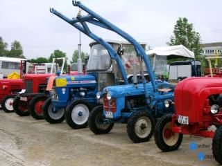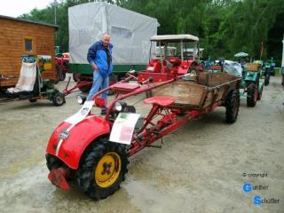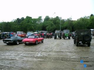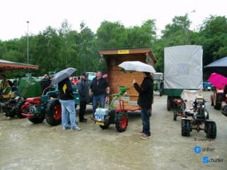 Es war heftiges Regenwetter angesagt, dann 3-4 Stunden auf dem offenen Schlepper, nein das haben wir uns nicht angetan. Da es sich um ein sehr breitbandiges Treffen handelt, steuerten wir dann doch den Sportplatz in Römerberg-Berghausen an, es gab zwar etliche Lücken aber es hat sich gelohnt. Der Platz war zwar matschig, dafür die Stimmung aber recht gut und tolle Fahrzeuge und Geräte waren in der Ausstellung.