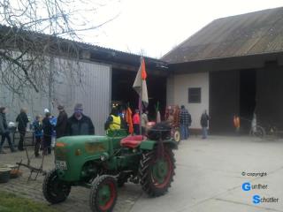 und vor uns ein Wagen mit richtig schöner Musik und toller Stimmung. Nachdem sich der Zug an der Halle auflöste fuhren wir wieder zu Georg auf den Hof und da gab es dann auch die Abschlußparty. Ein wunderbarer Tag war dann fast zu ende, aber eben nur fast. Wir Guntersblumer und Alsheimer lenkten unsere Fahrzeuge noch durch die kühle aber schöne Dunkelheit.... auch das war wieder ein tolles Erlebnis. An dieser Stelle danken wir Georg und seiner Frau für die Organisation und die schöne Abschlußparty. |