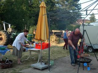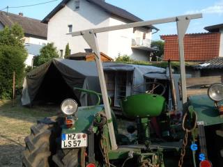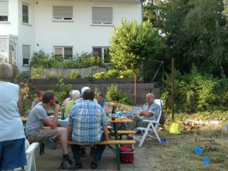 Unser Grillmeister Dieter hatte auch alle Hände voll zu tun. Im Garten waren auch einige Schlepper, teilweise wurden sie vorher so noch nicht gesehen. Es wurde ein wunderbarer Abend in geselliger Runde. Am Morgen hies es dann, wer feiern kann, kann auch aufräumen, wenn viele Hände anpacken ist das auch schnell erledigt. Als das Material wieder an seinem Platz war gab es noch eine kleine Rundfahrt mit Abschluß im Rheinhof. |