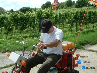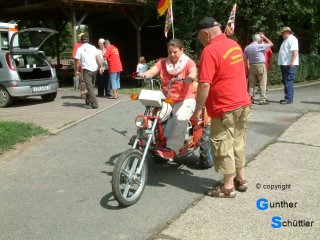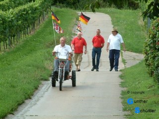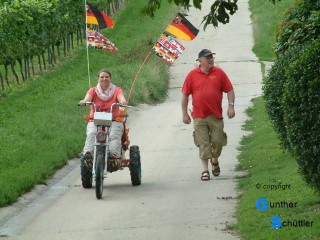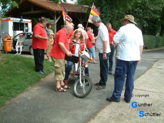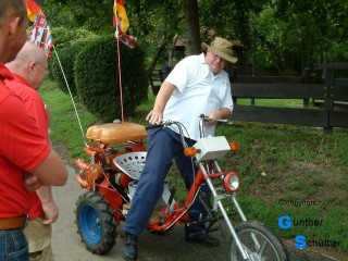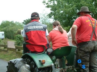 Als Spaß war eine Fahrt mit einem Schlepper vorgesehen, diese Aufgabe übernahm Hartmut. Die Freude auf beiden Seiten ist in den Bildern gut sichtbar. Da wir jedem die Gelegenheit zur Fahrt geben wollten war das sehr zeitaufwendig. Für die 2. Aufgabe übernahm Dieter die Verantwortung und lief neben der "Wilden Emma" her um Hilfestellung mit Rat und Tat zu geben. Auch diese Aufgabe kam bei den Helfern in allen Lebenslagen gut an.