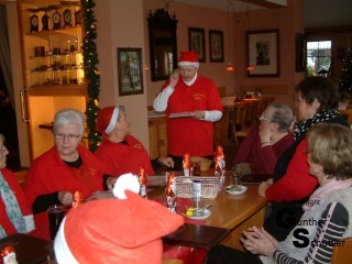 An einer schön dekorierten Tafel nahmen wir Platz, Helmut begrüßte alle Mitglieder und Gäste. Ein Gewinnspiel und die neuen Kalender