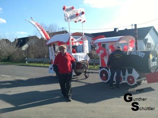 So starteten wir bei trockenem, sonnigen Wetter zum Treffpunkt nach Hamm. Ein letztes Anhängen und schmücken in dieser Fastnachtskampagne. Etwas wehmütig geht es dann in die Startaufstellung, bis es dann endlich losgeht. Wenn es dann endlich losgeht ist das alles Vergangenheit, da wird nur noch gefeiert.