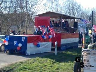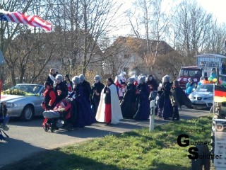viele Zuschauer und Helau bis zum Abwinken. Am Ende des Zuges noch ein letztes Helau und dann zum Abschluß zu Gudrun und Georg zum Abschluß