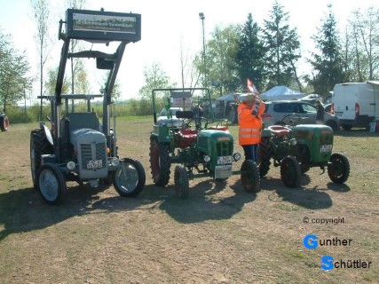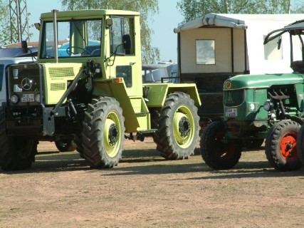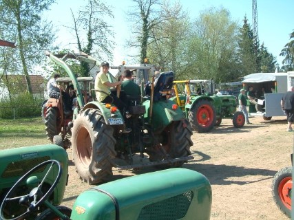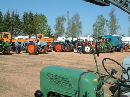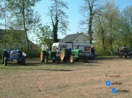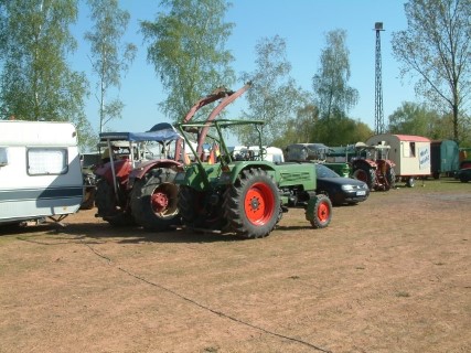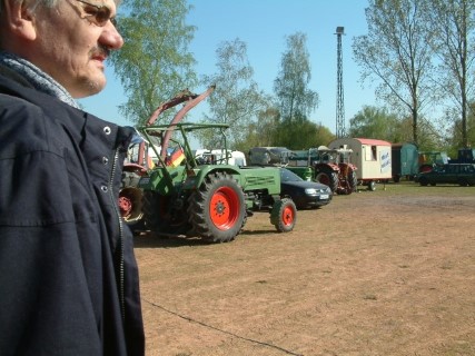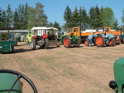 Dieses Versprechen galt auch uneingeschränkt. Bei herrlichem Wetter fuhren wir unserem Ziel, dem Sportplatz in Nack entgegen. Ca 1 Stunde vor Abfahrt waren wir da, Zeit für Dieselgespräche. Bekannte waren auch reichlich vertreten, ja die Zeit verging wie im Fluge. Immer mehr Fahrzeuge trafen ein. Vom Militärfahrzeug über Unimogs und Traktoren war alles vertreten. Langsam wurde es unruhig auf dem Platz,