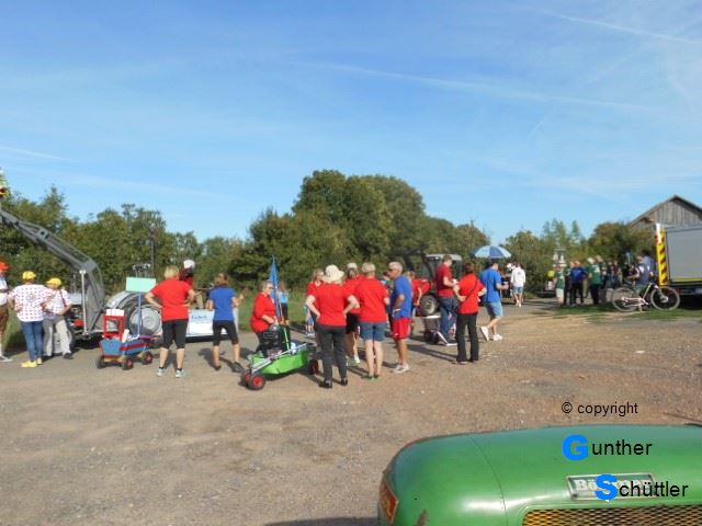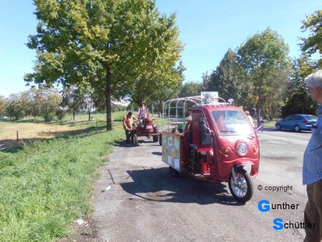 Nach langer Abstinenz ging es nach der Pandemie wieder zu einem kleinen Festzug zum Eingewöhnen. Unsere Fahrt führte uns von Guntersblum und Eich zum Treffpunkt in Osthofen. Nach einer kurzen Begrüßung setzten wir unsere Fahrt fort. Fünf Fahrzeuge insgesamt und davon 3 mit Aufbauten folgten der Landstraße sowie den Straßen durch Dörfer und der Stadt Osthofen. Unser Ziel Wachenheim erreichten wir früher als eingeplant, damit blieb auch noch genug Zeit für Weck un Worscht. | ||||