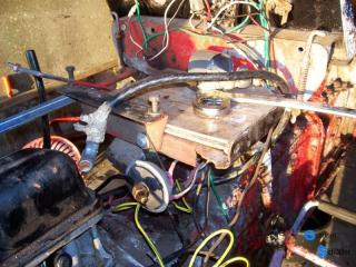 Nach den Messungen der Kompression handelt es sich bei unserem Fergie um einen reinen Benziner, der wohl mal einen anderen Tank erhielt. Allein der Benzinhahn ist schon eine Schau für sich. |