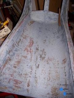 Nachdem die Farbe entfernt war blieb ein schmieriger Film zurück, keine gute Grundlage für eine Lackierung.
