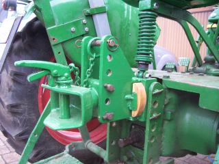 So wurde der Schlepper mit einem Hitchhaken ausgerüstet, der Anhänger war ein Einachser mit einer sehr weit hinten angebrachten Achse.