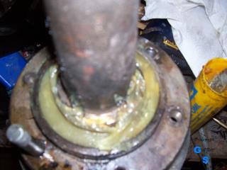Die Lagerschale war eingelaufen und das Lager mit einem dünnen Messingstreifen eingesetzt.