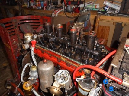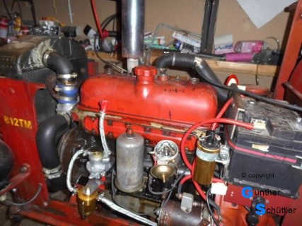 Bei den ersten längeren Fahrten zeigten sich ungewöhnliche Symptome, der Motor kochte. Leistungsabfall war jedoch nicht feststellbar. Zuerst wurde das Kühlsystem überprüft, ja der Deckel war eindeutig defekt. Die neueren Kühlerdeckel stimmen von der Bauhöhe nicht. Drei Gummidichtungen verbesserten dann die Situation, waren aber nicht die Lösung. Die Belastung des Motors ist eben nur gering einzustufen und sollte somit keine hohen Kühlmitteltemperaturen bewirken. Das Thermostat war leicht auszuschliessen, es war eben nicht mehr vorhanden....