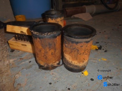 Um die Büchsen zu ziehen war ein besonderes Werkzeug notwendig, letztendlich ein entsprechender Deckel mit einem Gewindeloch in der Mitte. Dies hat mir dann ein Freund angefertigt, die Büchsen saßen jedoch extrem fest und konnten nur mit zusätzlichen Hammerschlägen entfernt werden. Zylinder 3+4 sahen auch normal aus, im Bereich von