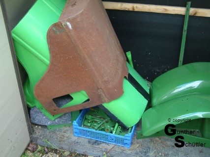 Es folgte eine lange Zeit, in der der kleine Deutz in Kisten verpackt in Ecken eines Gehöftes1) gelagert wurde. Nachdem ich mich im Jahr 2016 dazu durchgerungen hatte und das Sparkonto auch grünes Licht gab, musste ich einen großen Schwund durch lagern feststellen, dadurch wurde ein Teileträger fällig. Also Kosten die nicht sein mussten und das Budget erst mal wieder sprengte. Dieser und mein inzwischen als Kistendeutz bekannter Trecker waren inzwischen in Guntersblum bei einem Freund und Oldtimerkollegen zwischengelagert worden, bis ein bekannter Traktordoktor1) sich um denn Kistendeutz kümmert, da kam aber kaum was rum und dann auch noch das was ich wirklich nicht wollte.