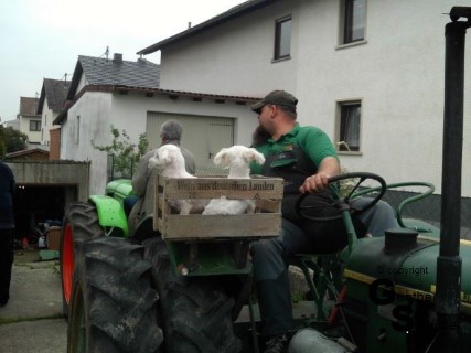 Also ab auf dem Weg zur Hochzeit und nebenbei noch eine Dreschmaschine besichtigt. Bei der Besichtigung erfuhren wir dann in einem Gespräch das es auch einen kleinen Deutz gab der zum Verkauf stünde. Meine Verlobte entschloss spontan, mir diesen zur Hochzeit zu schenken. Bei dem Transport der Dreschmaschine wurde er dann als Beiladung mitgenommen. Es gibt noch einen Scan eines Zeitungsartikels als er auf der Hessenaue abgeladen wurde.
