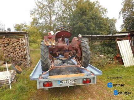 Die Gründe für den Kauf habe ich ja bereits beschrieben, es sollte nur die linke Portalachse sein..... .....und dann hing da auch noch ein Schlepper dran. In ebay Kleinanzeigen war er im Westerwald zu finden, billiger als die Portalachse nach Deutschland zu schaffen war er allemal. Der Verkäufer überprüfte noch einiges bevor wir uns dann trafen. Er sagte mir, dass der Motor zwar läuft aber dann wieder stehen bleibt. Auf weitere Nachfragen stellte sich heraus, da er keine 6 Volt Batterie besaß gab er mit einer 12 Volt Batterie Starthilfe und wenn diese wieder entfernt wird bleibt der Motor stehen. Benzinmotor..... Ja logisch.