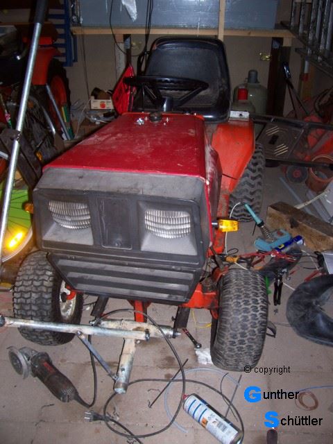 Dann ging es nach dem Carport mit viel Schwung an die kleine Hako, der Schneeschild wurde angebaut, die Beleuchtungsanlage wieder hergerichtet, Rücklichter und Blinker angebaut. Auch eine Warnblinkanlage durfte nicht fehlen. Diese war ein Eigenbau, bei dem sich dann die Blinker rechts und links abwechselten. Wenig Schneefälle machten jeden Einsatz zu einem Vergnügen, ja da räumt man gerne für die Nachbarn mit.