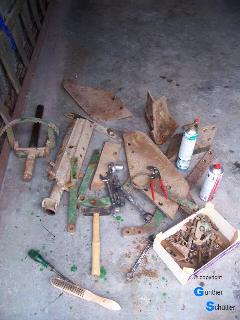 Der Plug war teilweise zerlegt, es war ein Schar entfernt. Der Letzte Einsatz war in einem Weinberg und lag schon lange zurück. Die blanken Flächen von Schar und Streichblech boten dem Zahn der Zeit üppige Nahrung.