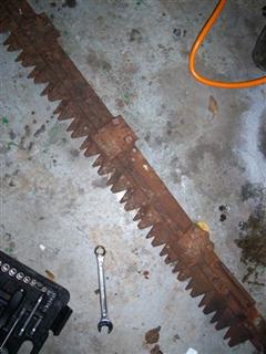 Zuerst wollte ich den Messerbalken sandstrahlen lassen und möglichst viele der alten Teile erhalten. dann kamen Bedenken, daß danach viele Teile bis zur Unkenntlichkeit "verbraucht" wären. Die nächste Entscheidung war dann alles mit der Drahtbürste (schonend) reinigen und nur wenig zu rekonstruieren.